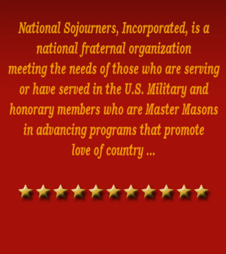The Purposes of National Sojourners shall be to organize current and former members of the uniformed forces of the United States, and Honorary Members, who are Master Masons and U.S. citizens into Chapters, for the promotion of good fellowship among its members, for assisting such as may be overtaken by adversity or affliction, for cultivating Masonic ideals, for supporting all patriotic aims and activities in Masonry, for developing true Patriotism and Americanism throughout the Nation, for bringing together representatives of the uniformed forces of the United States (past and present) in a united effort to further the military need of National Defense, and for opposing any influence whatsoever calculated to weaken the National Security.