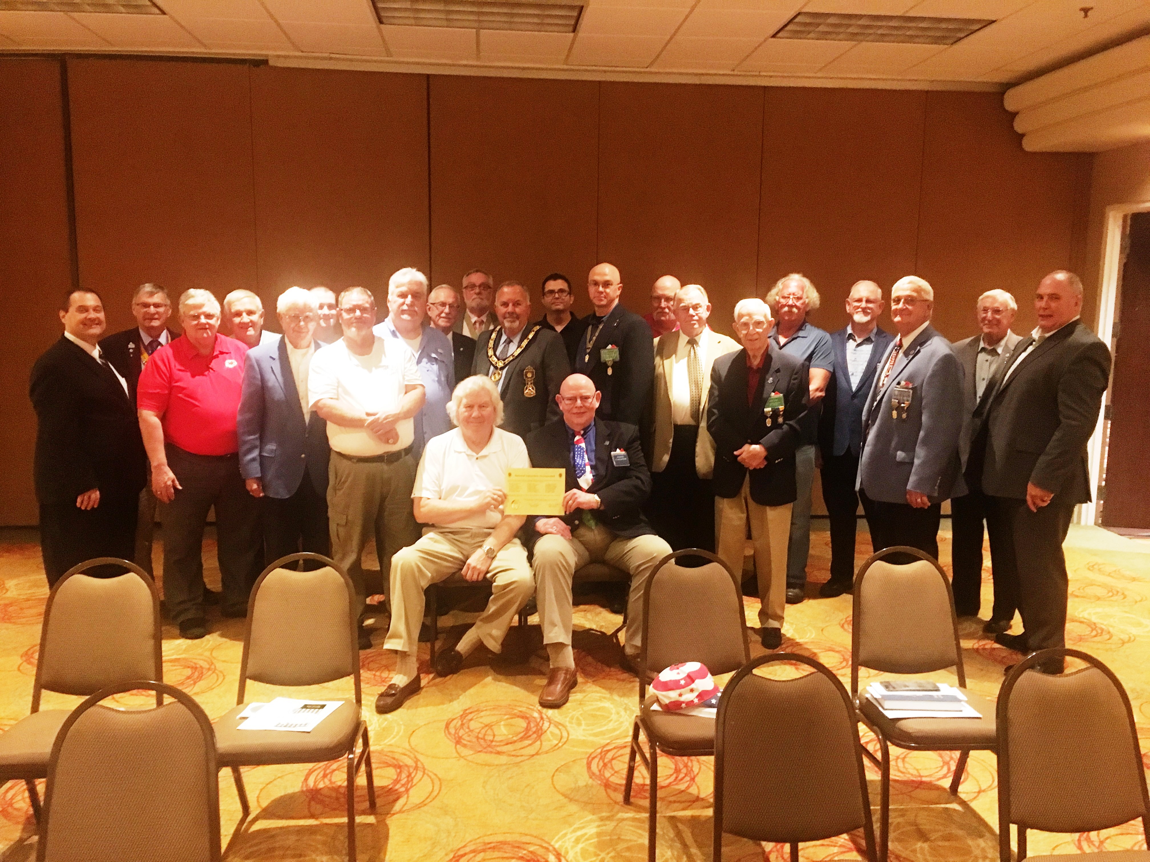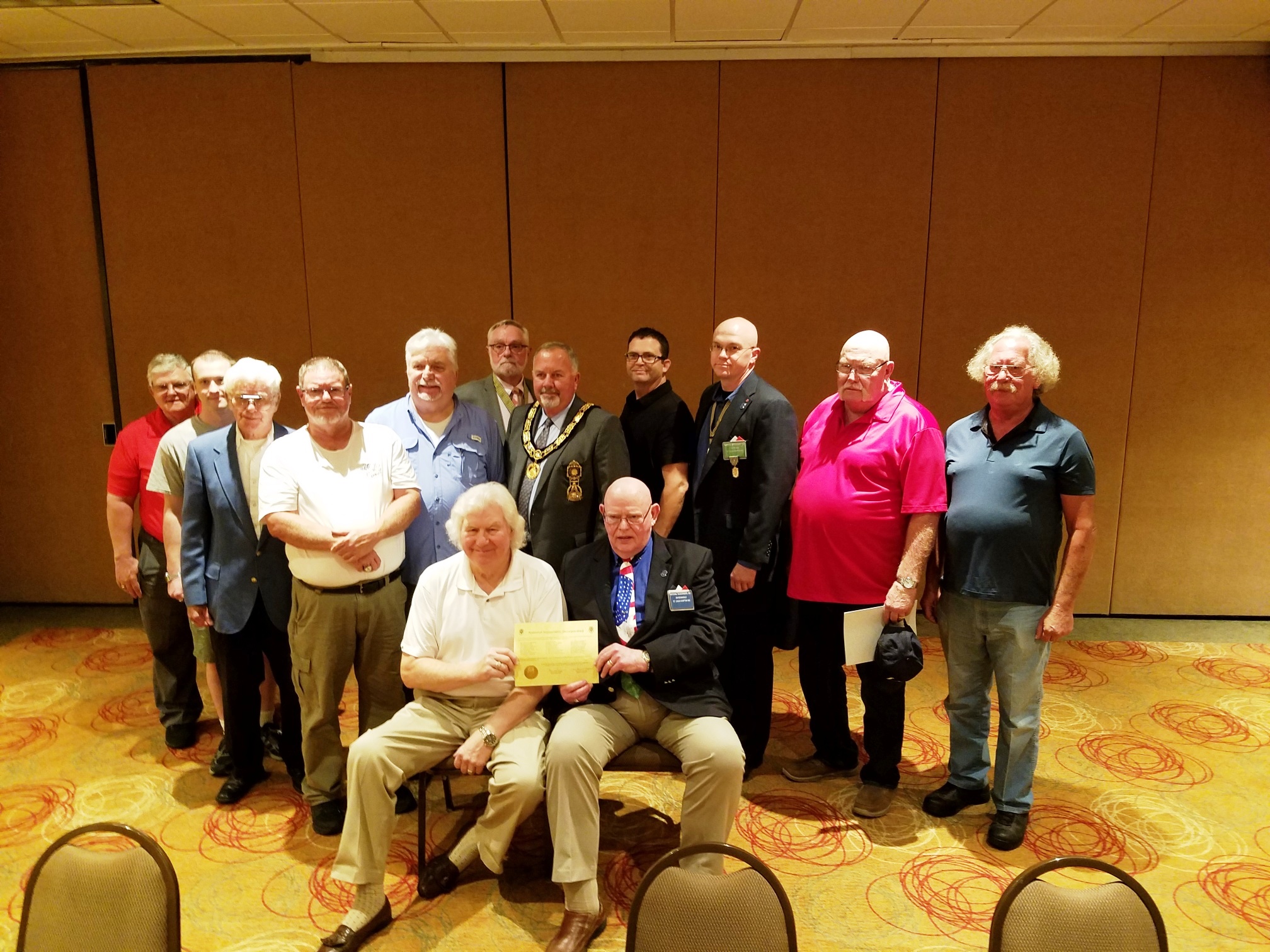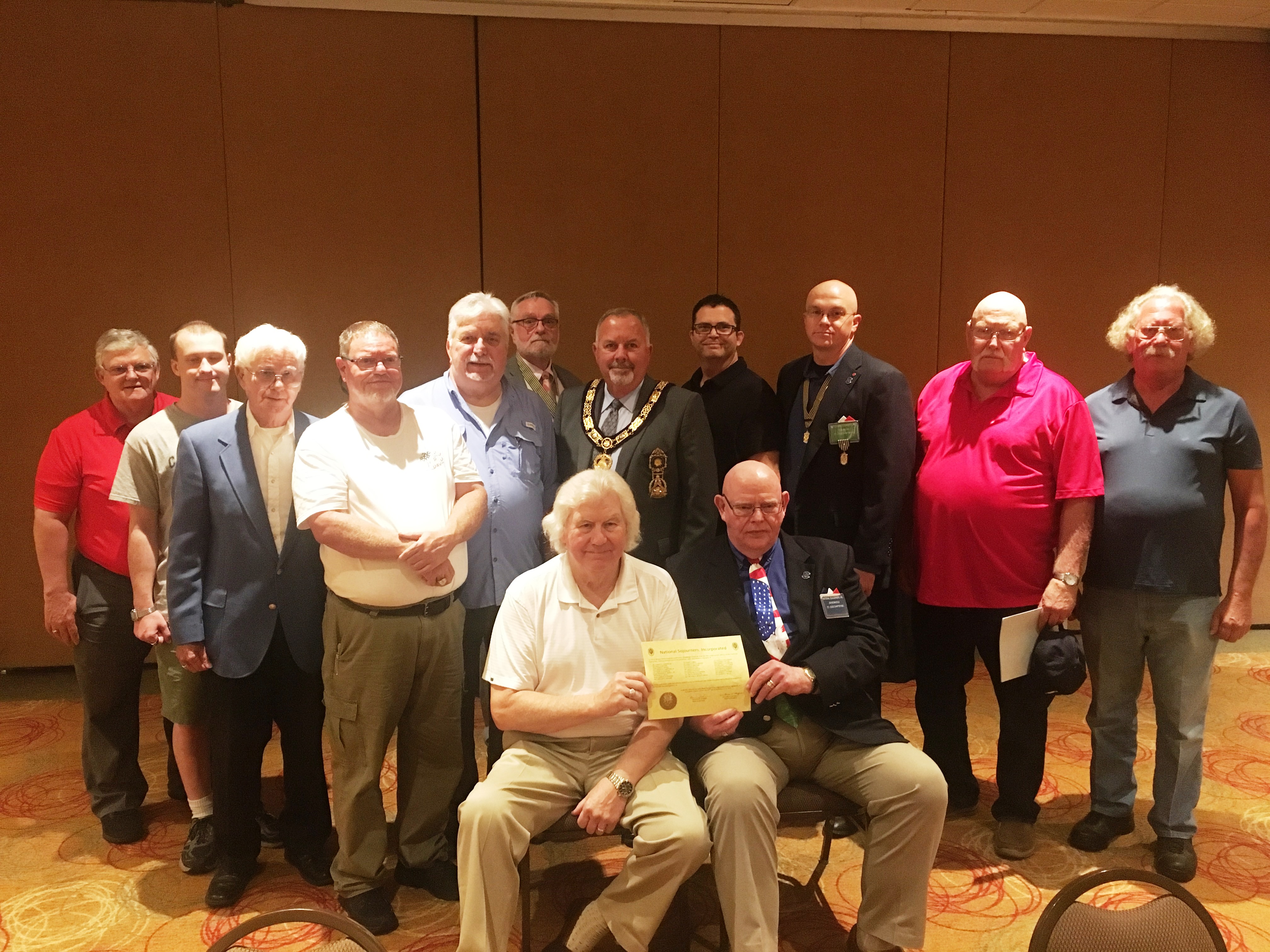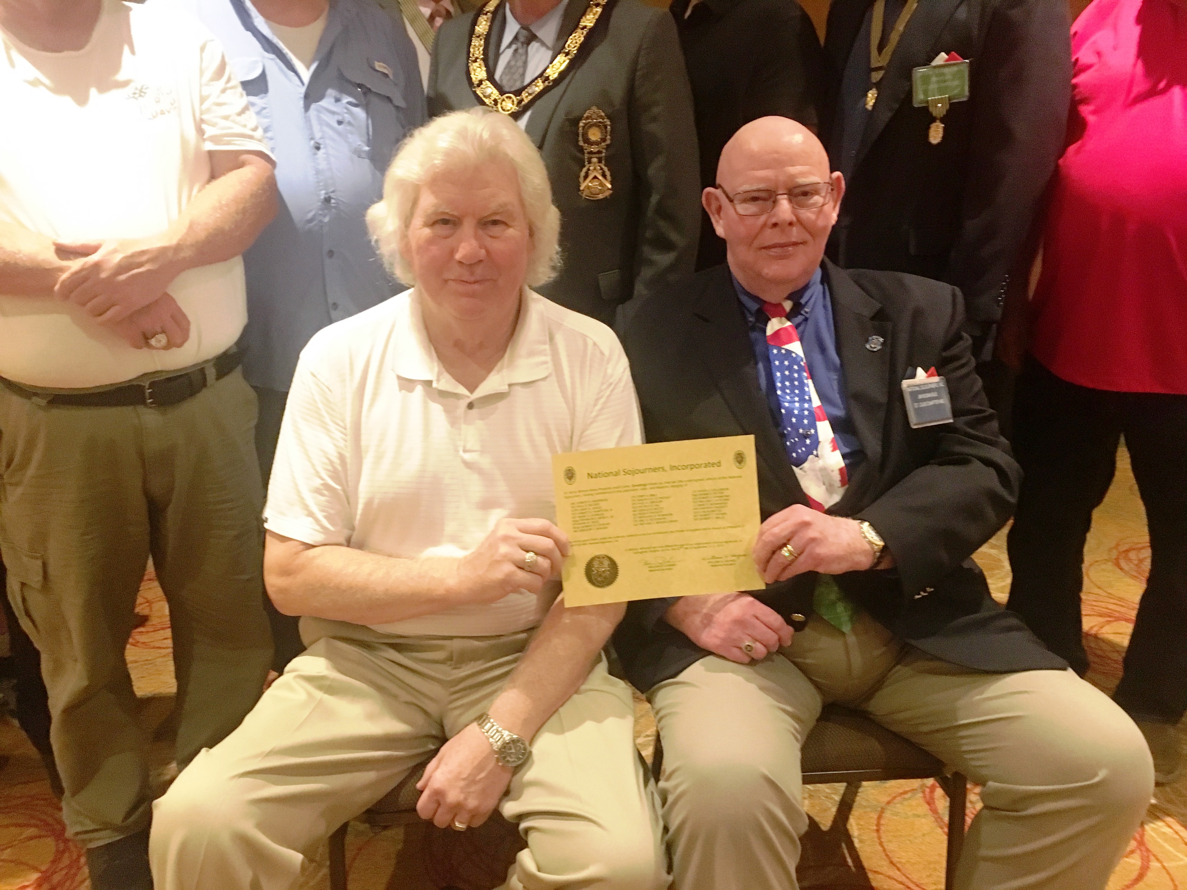At the 198th Annual Communication of the Grand Lodge of Missouri A.F. & A.M. in Columbia, Mo., members of St. Louis Chapter # 22, National Sojourners, Inc., were honored to assist in the rechartering and initiation of 10 new members for Springfield Chapter # 84. Upon completion of the initiation, Regional Representative Dennis Fetter presented the Charter to newly appointed President Carlin Smittle and Secretary James McManigle, of Springfield Chapter # 84.